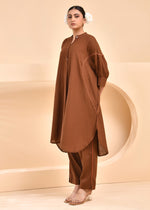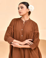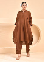 The kurta features a half placket neckline, subtle contrast piping, and a rounded hemline that gives the outfit an easy, flowing finish. Designed with functional side pockets and a relaxed structure, Gulabi balances comfort with understated elegance. Paired with straight-fit pants, this set is timeless and versatile.