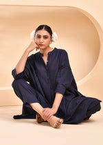 The kurta features a half placket neckline, subtle contrast piping, and a rounded hemline that gives the outfit an easy, flowing finish. Designed with functional side pockets and a relaxed structure, Gulabi balances comfort with understated elegance. Paired with straight-fit pants, this set is timeless and versatile.