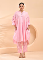 Gulabi is a soft pink kurta set designed for effortless everyday comfort. Crafted in 100% cotton slub, the fabric is breathable, lightweight, and naturally textured, making it comfortable for long hours of wear. The gentle pink tone adds a calm, graceful presence to the silhouette.