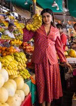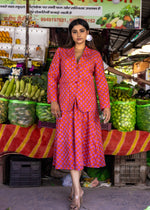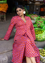 Checks Hand Block Printed Blazer and Skirt Set - Rangbaazi
